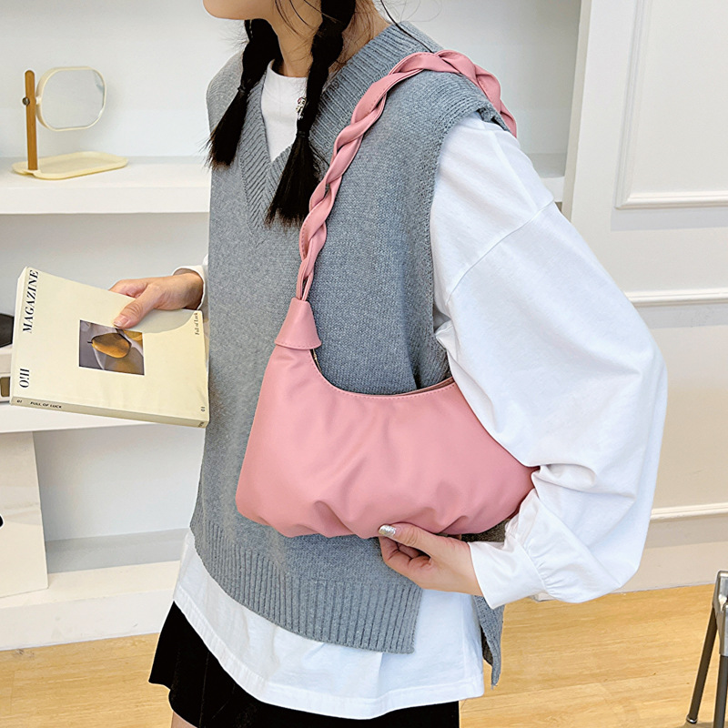 おしゃれな三つ編み紐ハンドルが特徴的なレディースミニバッグです。