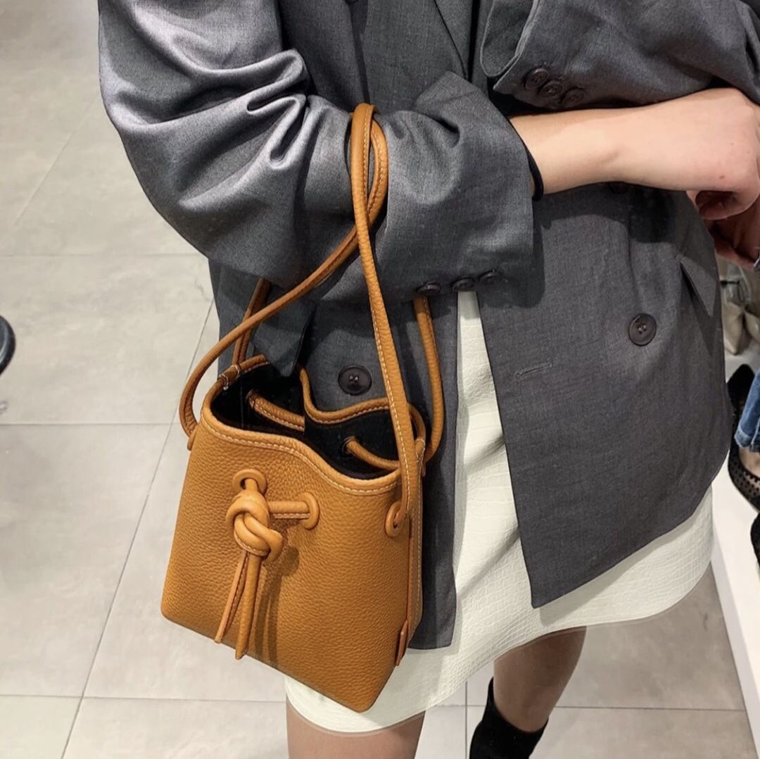 コンパクトなサイズ感が魅力的な巾着型のミニバッグです。