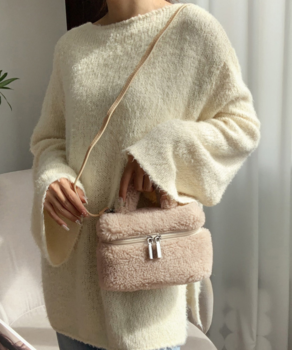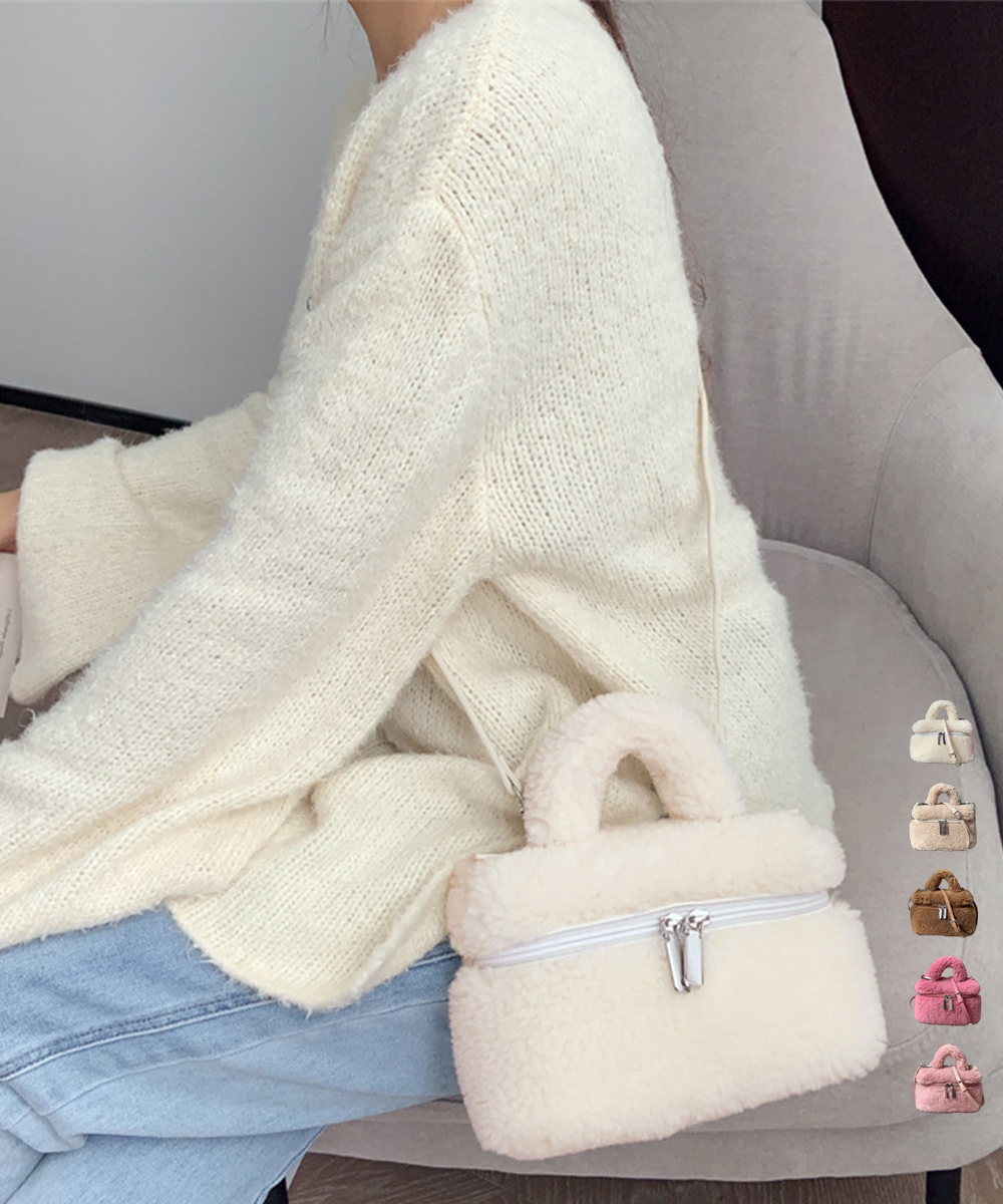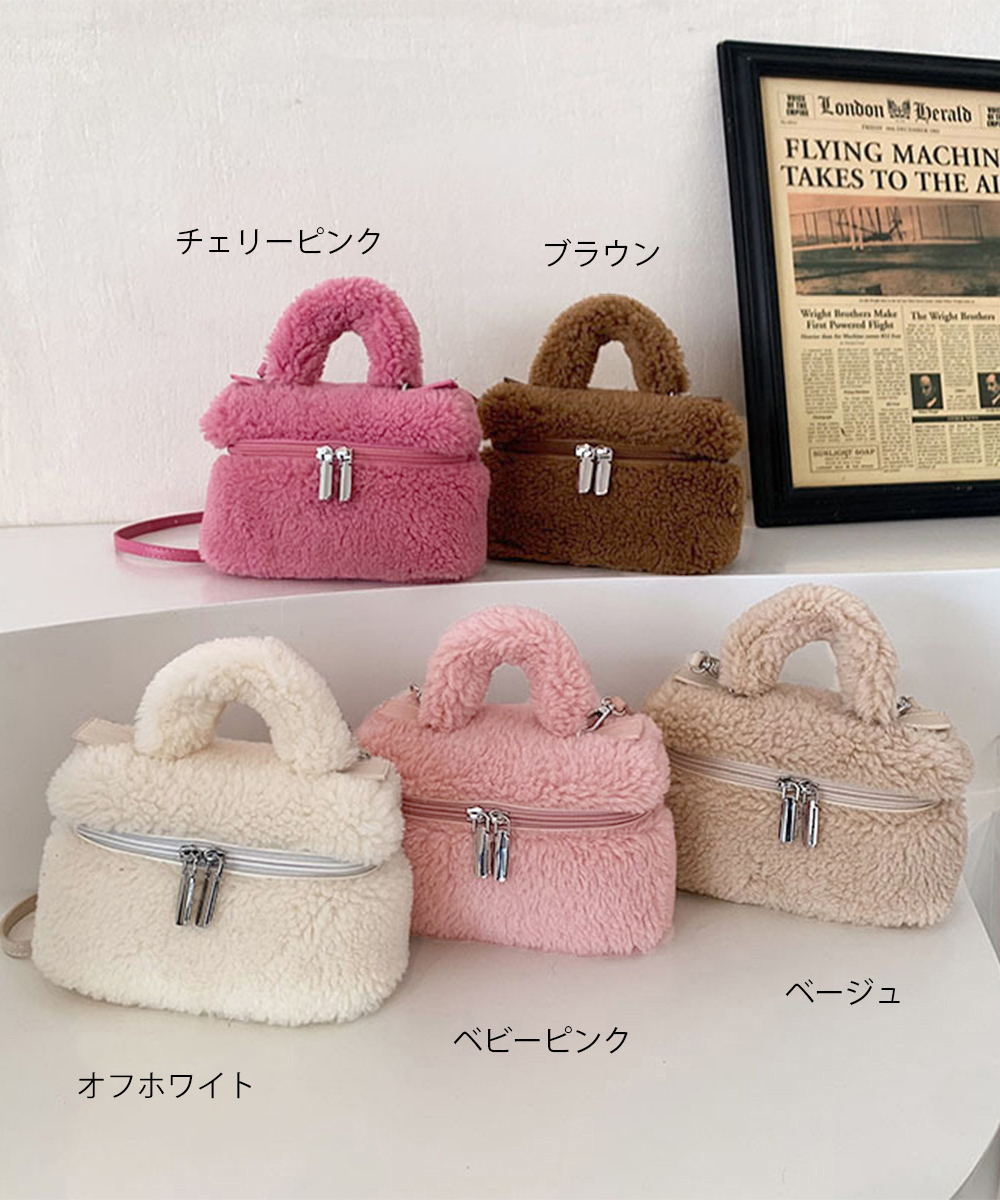 丸っこいフォルムが可愛い、ボア素材が季節感を添えるボックス型のミニバッグです。