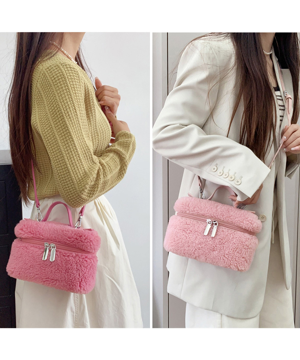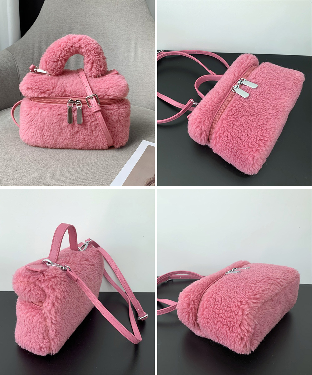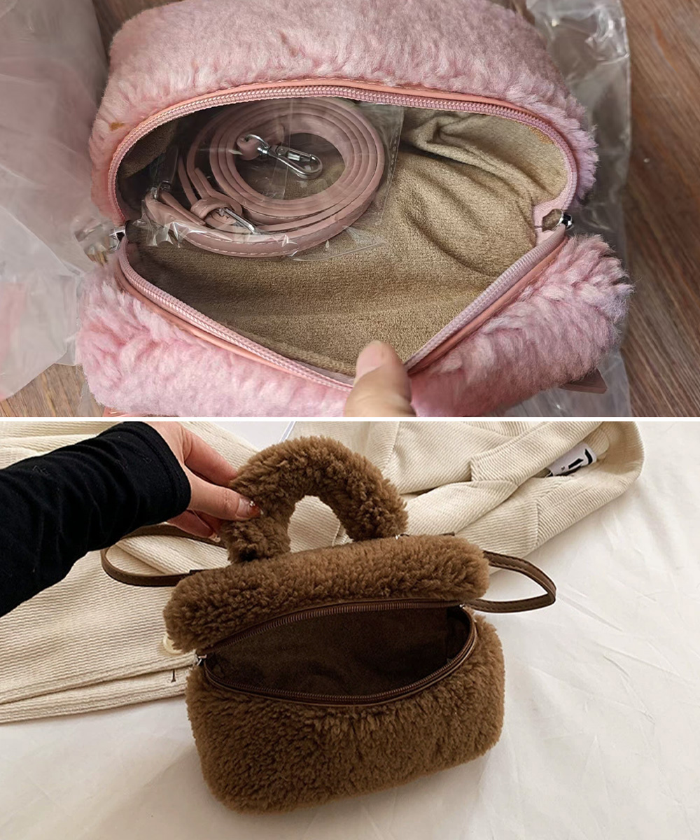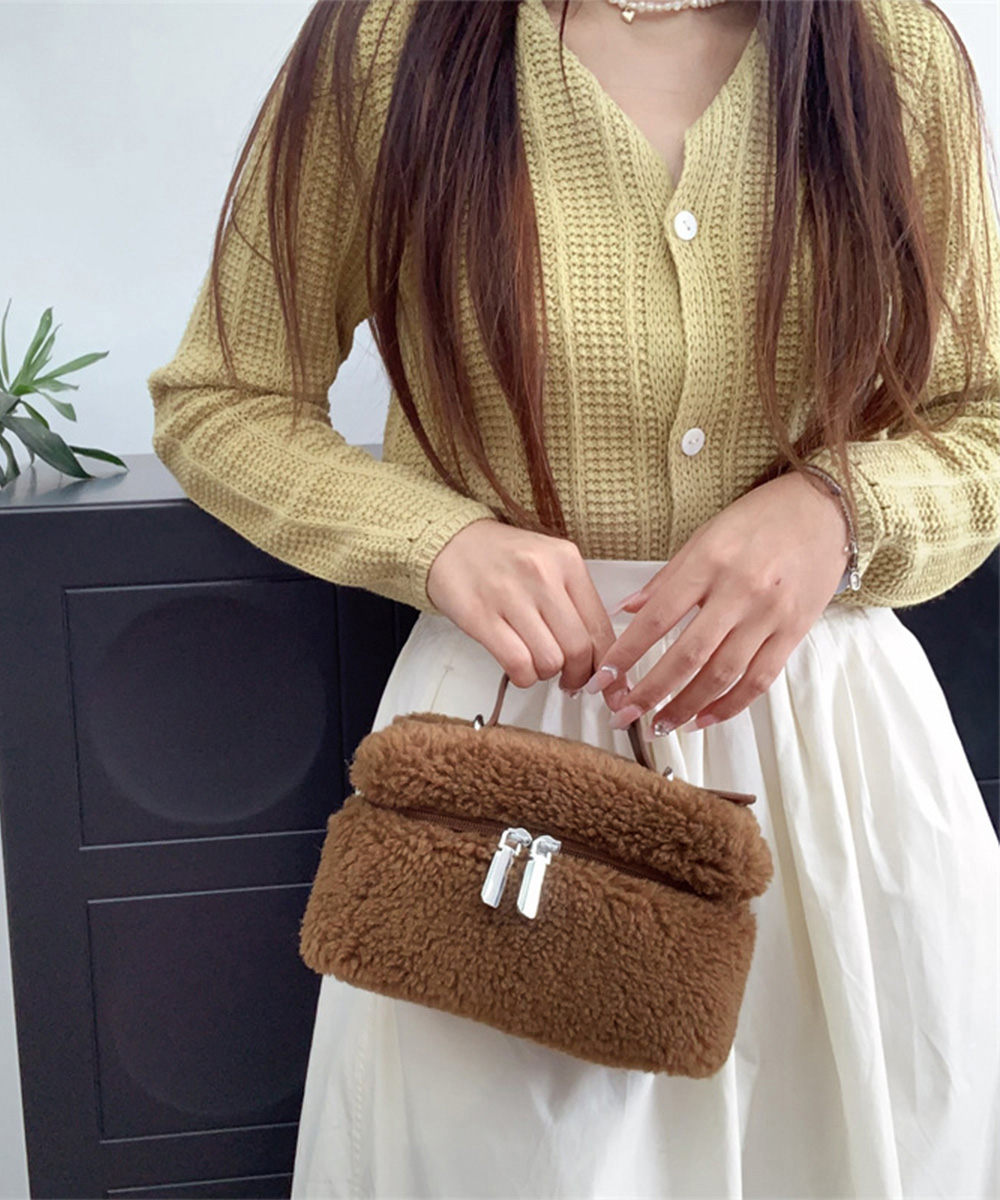 丸っこいフォルムが可愛い、ボア素材が季節感を添えるボックス型のミニバッグです。
