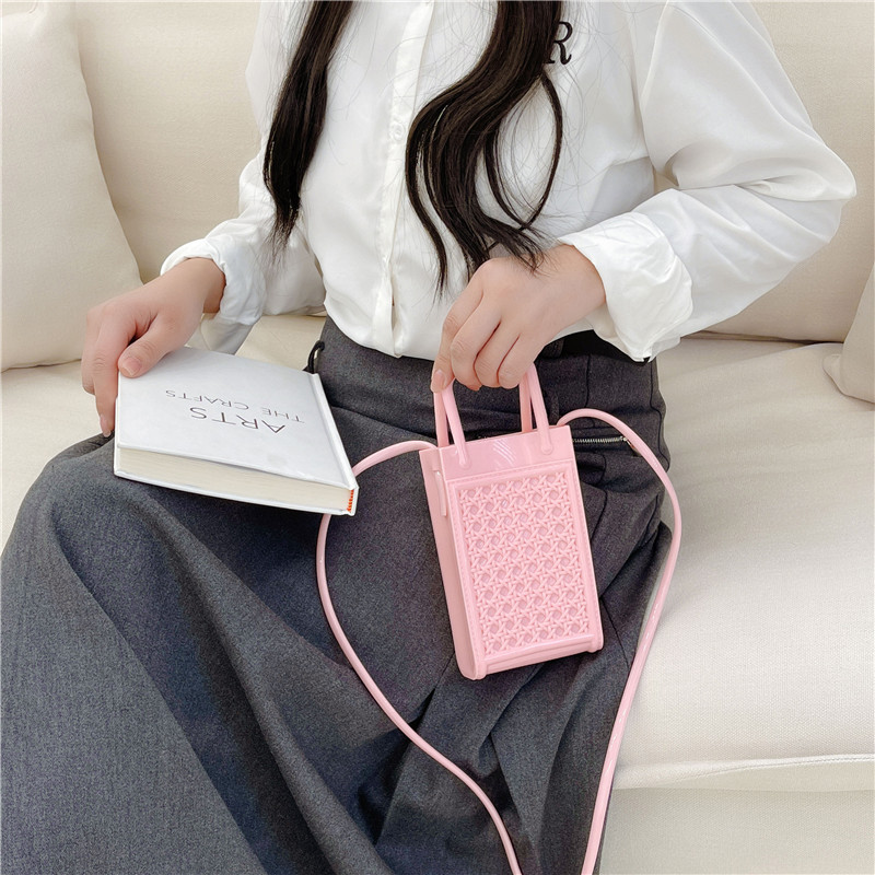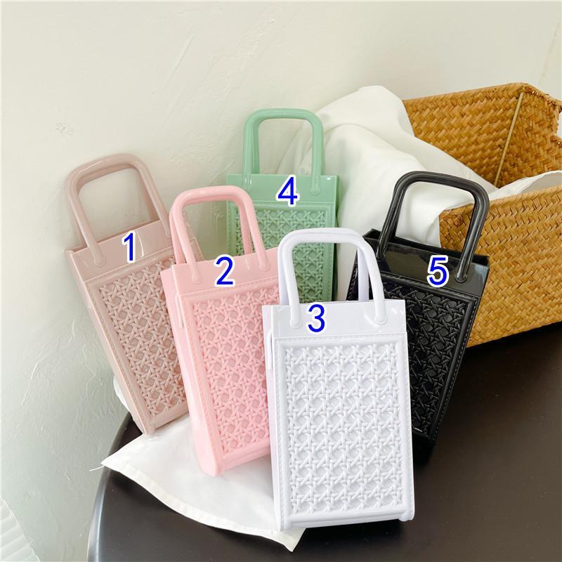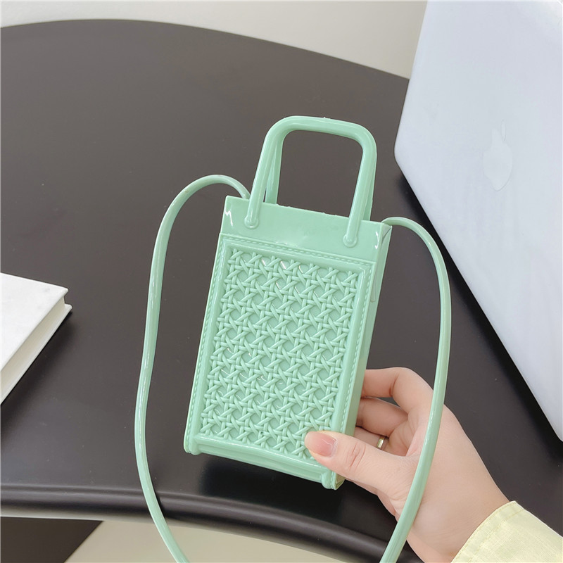 スマートフォンや小物の収納に最適な透明ゼリー素材のミニバッグです。