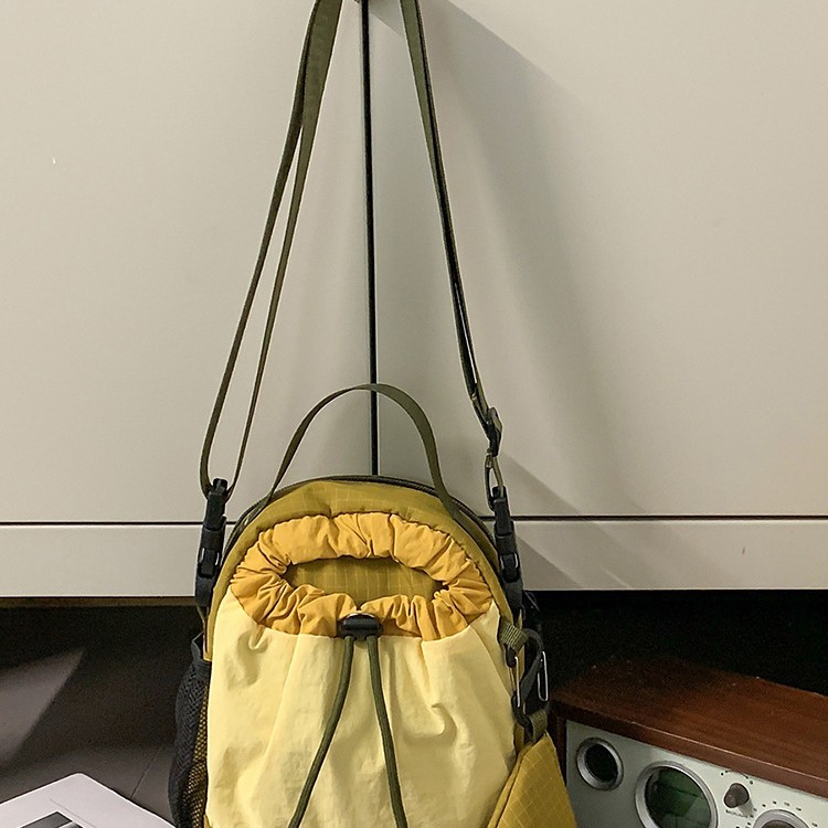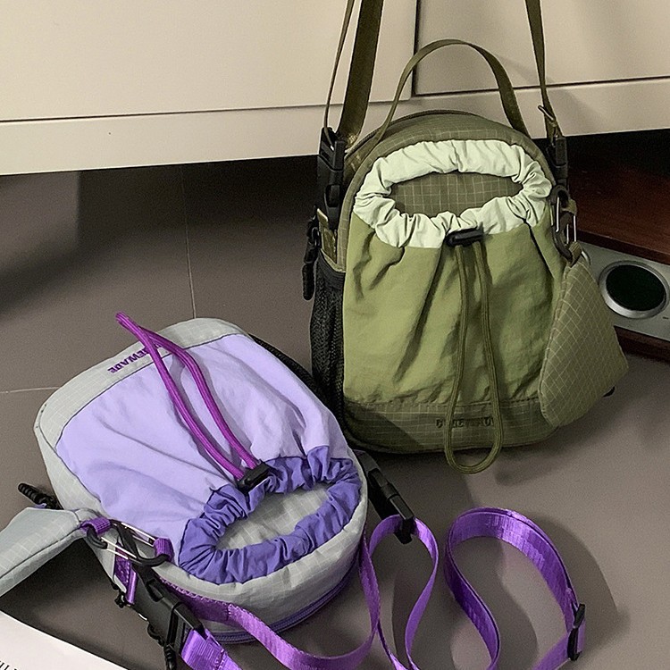 巾着型のコンパクトなデザインで、必要最小限の荷物をスタイリッシュに持ち運べます。
