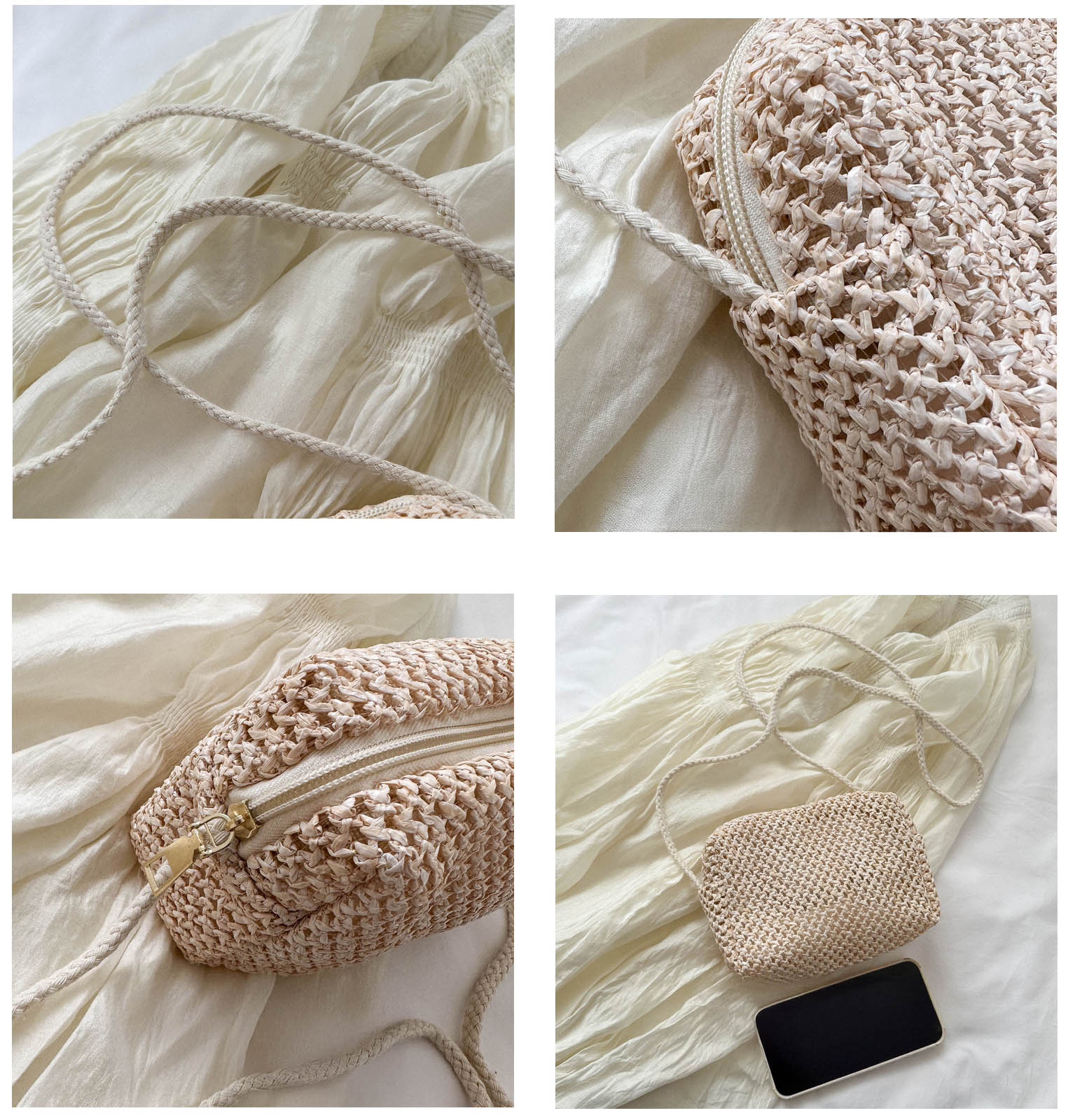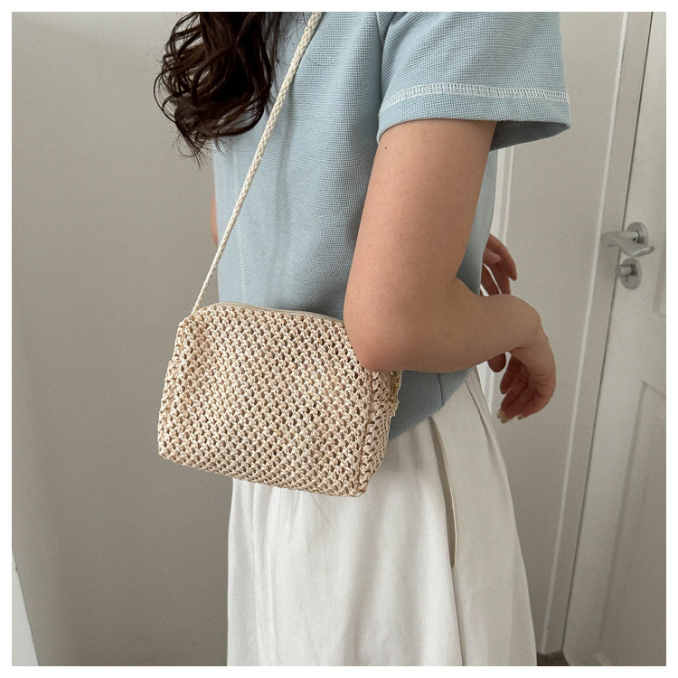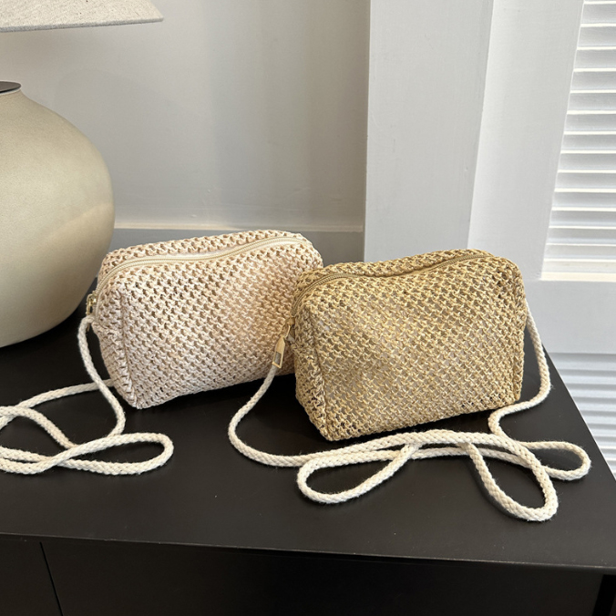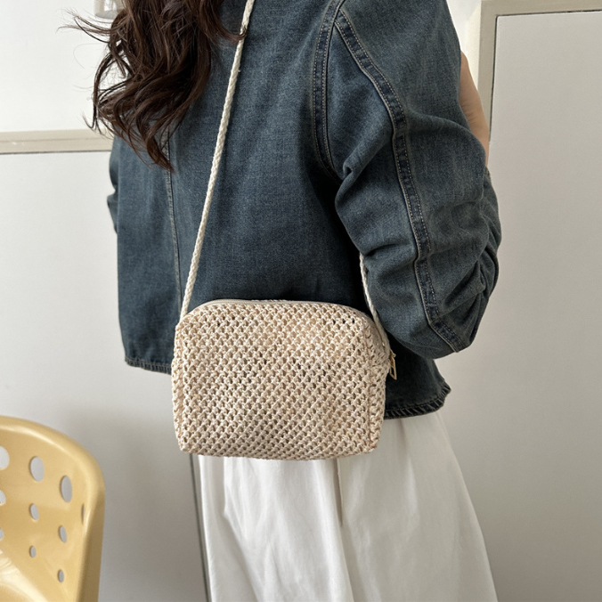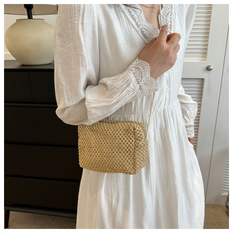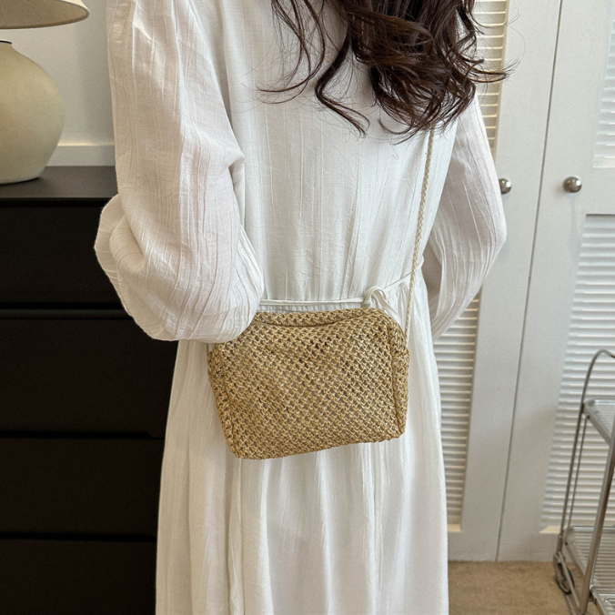涼しげなストロー素材を編み込んだスクエア型のミニバッグ。
