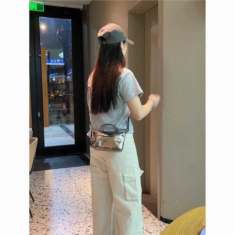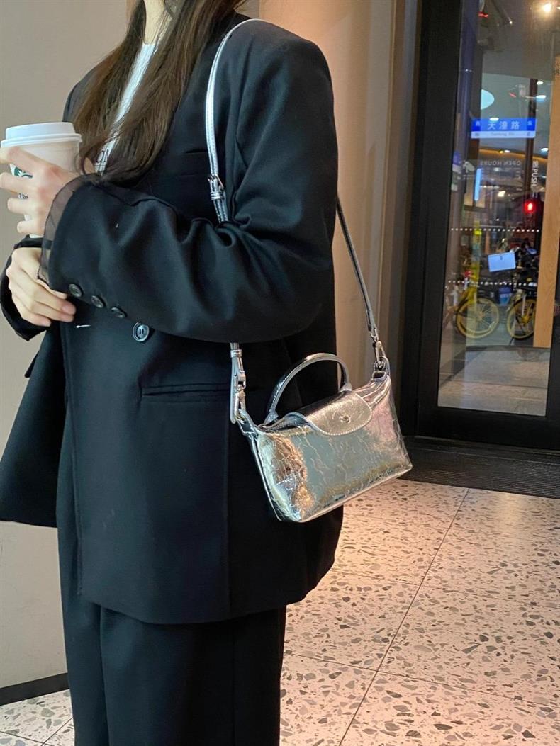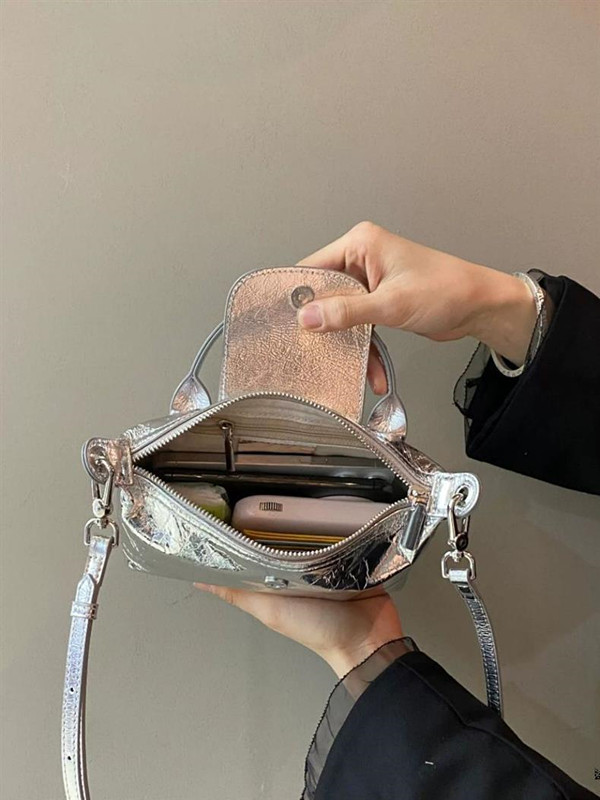 メタリック素材で上品な輝きを演出し、コンビニへのお買い物や